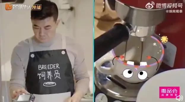 王新军穿着"饲养员"的围裙,一大早就开始煎鸡蛋、煮咖啡、烤吐司↓