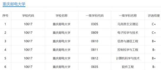 重邮的计算机和信息通信是B+,B类学科一共4个,C类学科3个。