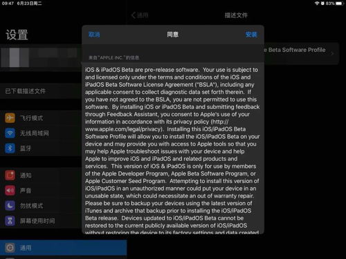 一旦描述文件下载完成,用户可以通过以下步骤进行安装。打开设备的“设置”应用程序。在设置界面中,用户可以看到自己的设备名称,点击进入设备信息界面。在该界面中,用户可以找到“通用”选项,点击进入“通用”设置界面。在“通用”设置界面中,用户可以找到“软件更新”选项,点击进入“软件更新”界面。