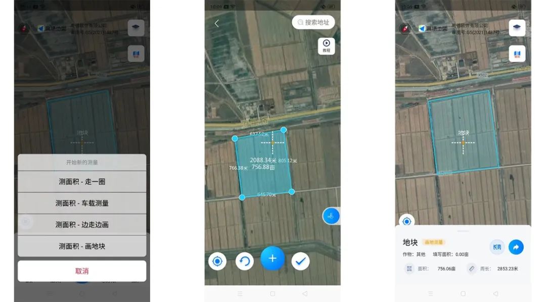 4、软件法。测亩类app软件,安装到手机内即可使用,既可以像测亩仪那样利用卫星定位测量,也可以直接在高清卫星地图上进行画点测量,还能测量车辆行进过的面积,精确度高,智能计算周长、面积。只需一部手机就能搞定面积测量,无需产生额外费用,且整个测量过程可视化、省人力。真正实现了,站在田间地头,就可测量田地面积。