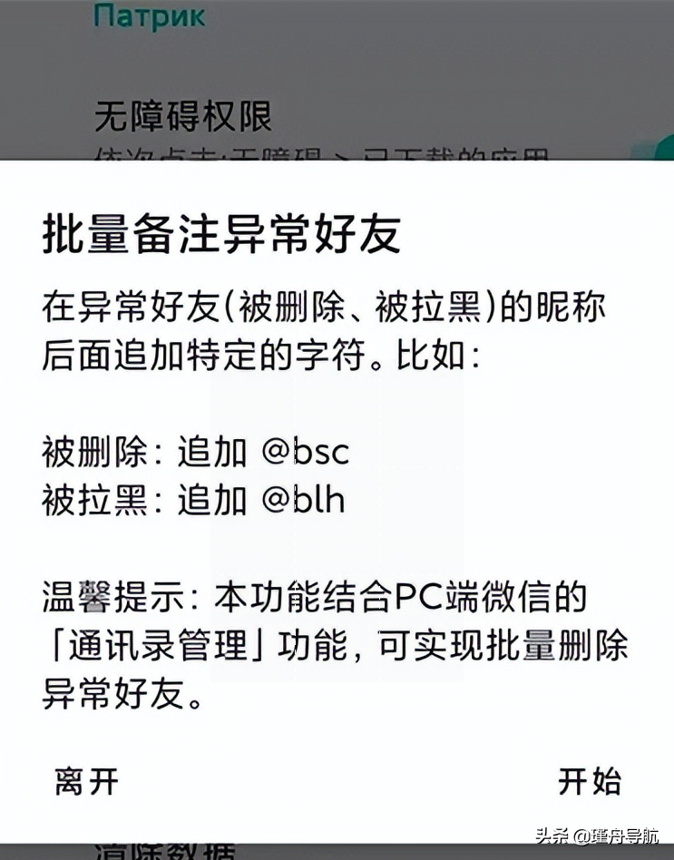 当你检测完成之后,APP 会帮你统计出 “异常好友” 的数量,你还可以直接对他们进行批量备注 (如下图),比如被删除的好友会加上 @bsc / 被拉黑的加上 @blh。