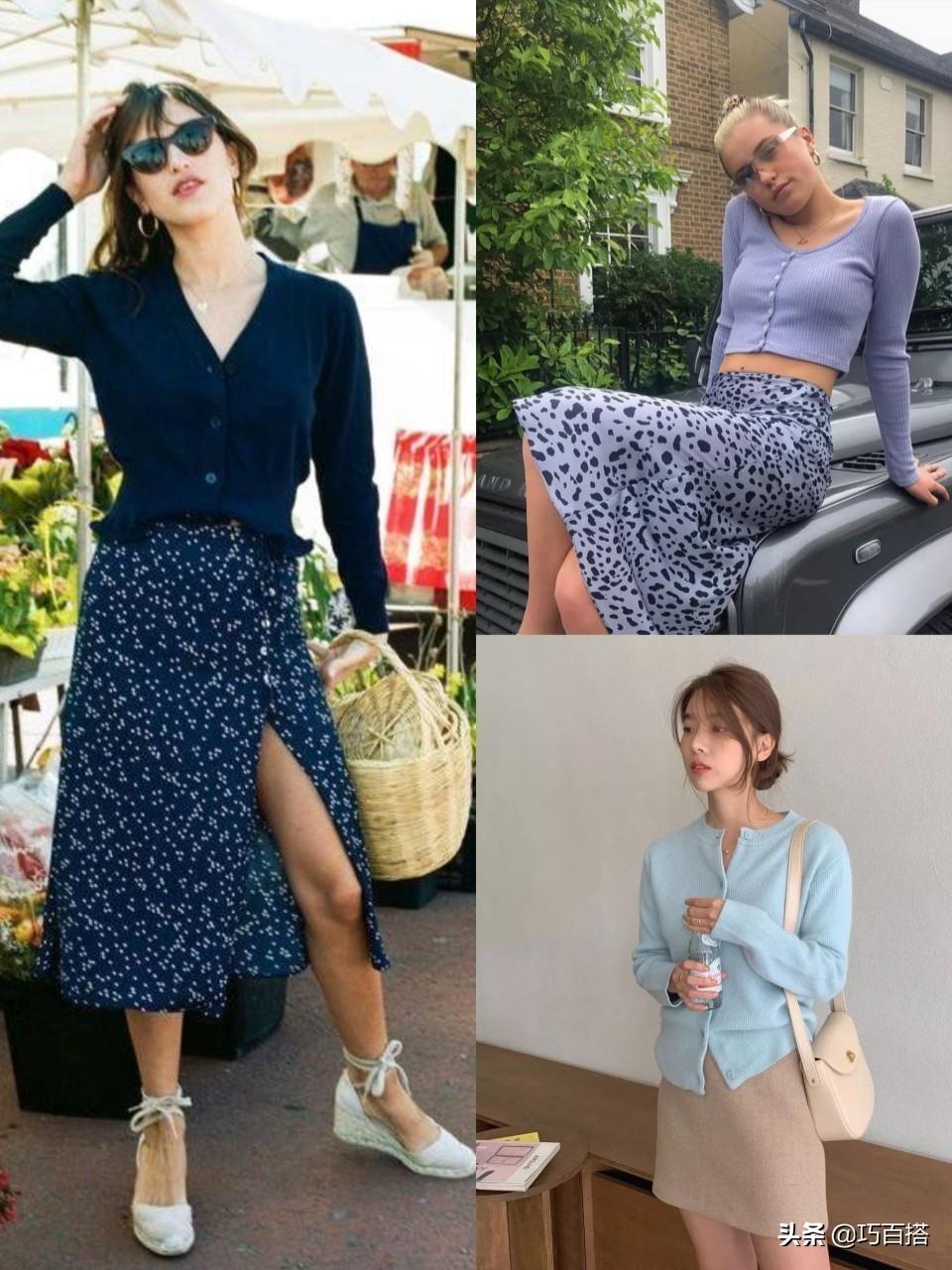 四,针织开衫+小裙子,造型精致又好看