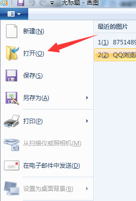2、打开后选择左上角的倒三角图标,点击“打开”,如下图所示。