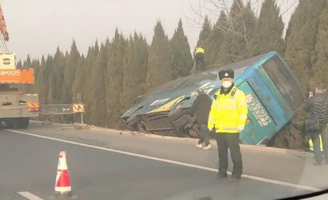 大客车失控侧翻高速路 交警及时转移乘客
