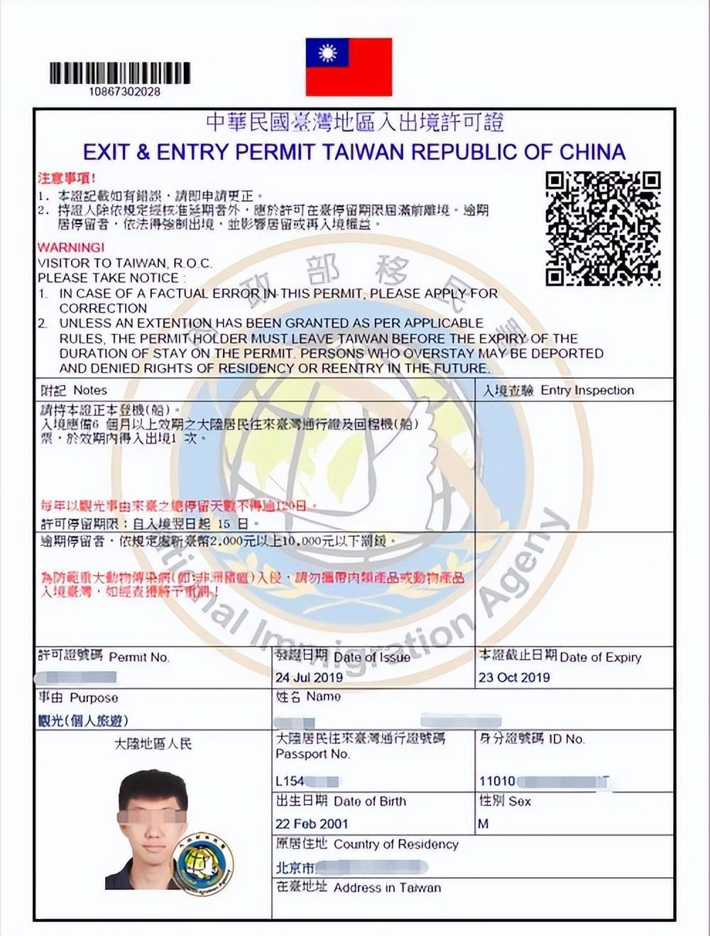 此外,前往台湾地区还需要台湾地区的许可,并签发入台许可证,但民进党当局一直以疫情管控为由拒绝为大陆入台游客签发许可证。但自2023年2月20日上午9时起,又恢复了港澳人士赴台自由行申请,下一步是否恢复对大陆居民的申请仍不好说。