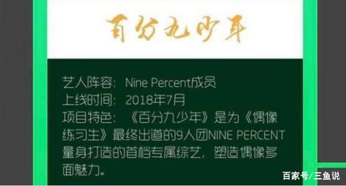 最近,NINEPERCENT刚刚忙完济南站的商演,到7月14号时该团将迎来出道 第99天,在这个游纪念意义的日子里,运营团队想到当然是再“再捞一笔”,故而商演再次加场,长沙站宣布开启。这时,粉丝再去271上一看彻底傻眼,被“忽悠”了两次的《百分九少年》播出日程再次延期。这次,不再是什么9月10号了,直接推迟到了9月30号,照这个节奏延期到明年播出也不是不可能。