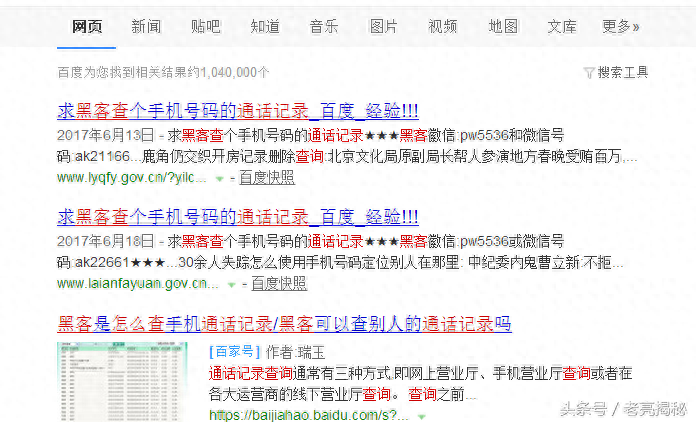 小白:“你好,我在啊百度看到你的联系方式,请问可以查别人的通话记录吗?”