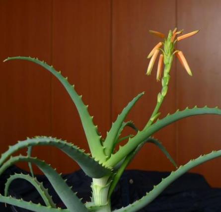 中国本土的芦荟,看起来有些病态的感觉,枝条上还有小斑点,但是却是家里常见的芦荟品种了。这种本土芦荟的作用可以减少皮肤皱缩速度,枝条上的水分涂抹在脸上或者身体上,可以使皮肤更有弹性,但是它怕冷,不耐湿哟,大家可要花心思呵护了。