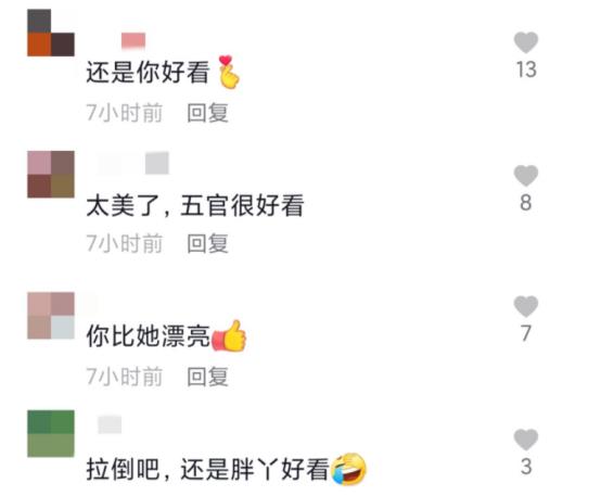而就在近日,对方又通过社交平台,晒出了一组自己刚刚拍摄的近照,可以发现,此时的她留着一头利落的短发,穿着白色的衬衣,整体装扮相当的有气质,手指上还戴着亮闪闪的戒指,吸引了无数网友的目光。此时的她外形有着很大的变化,接下来她更是自信地与艺人许晴比美,利用同角度的拍摄手法,自夸二人的长相简直是一模一样,与许晴一样的美。