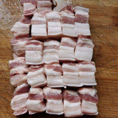 五花肉 500g冰糖 2大颗八角 2个香叶 3片姜 10片料酒 2汤匙生抽 1汤匙老抽 半汤匙