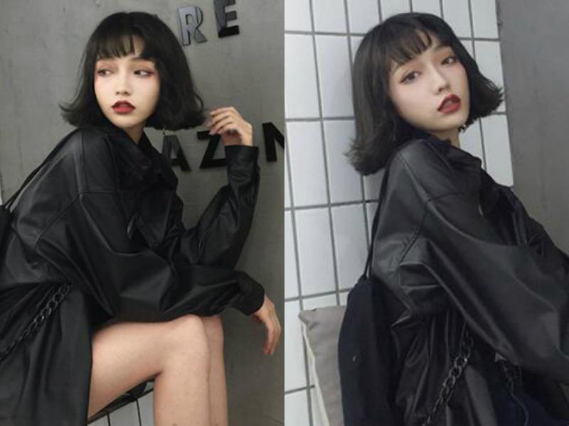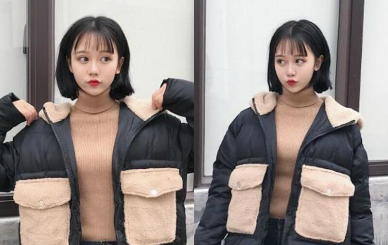 这款摩卡波波头给女生带来了不少吸引力,齐下巴的短发,向外翘蓬松带点凌乱的发尾,短短的眉上刘海,性感的妆容,都充满了诱惑力,身穿黑色的皮外套,没有染色的头发,有种冷艳少女的感觉。