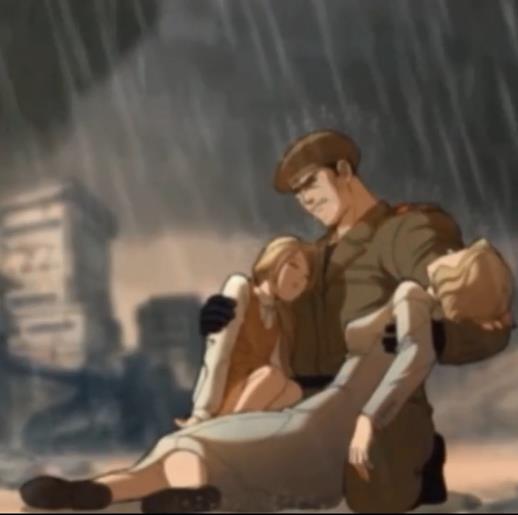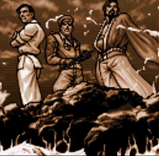 拳皇94结局中,作为BOSS的卢卡尔被打败,终于报仇的哈迪伦会将自己与家人的合影抛向天空,并用手刀将其切成两半。