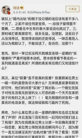 何洁深夜长发文曝离婚内幕,透露夫妻生活不和谐,否认婚内出轨