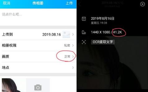 我们以“高清”画质上传刚才那张照片,上传之后,我们可以看到照片的大小仍然是“41.2K”,与“正常”画质上传并没有任何区别,高清画质仍然对图片进行了大幅的压缩。