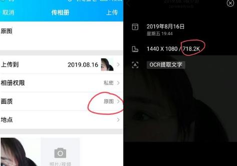 最后我们以“原图”画质上传,上传后照片的大小为“718.2K”非常接近原图的画质了,如下图所示。