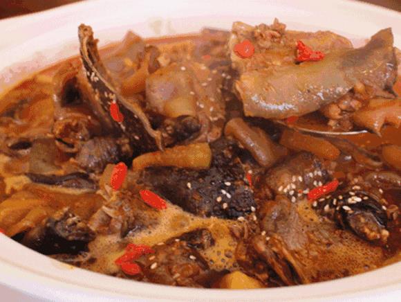 【做法】将不粘锅置于火上,下入猪油,爆香姜片、葱段、蒜末、干红辣椒段,下入麻辣火锅底料炒香,放入甲鱼块,改用小火炒,烹入料酒,加入适量的啤酒,随同木铲上桌,用电磁炉边小火加热,便可开动了。