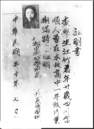 其二,后来换了一个“筠”字的“江竹筠”,是她被捕入狱之后填写的一个名字。但这个略有变化的名字,和其他类型的化名不一样,并没有从根本上改变她名字的读音,因而绝无掩盖自己真名和身份的意思。江姐是被叛徒出卖才被捕的,她不可能以为改了个“筠”字,敌人就不知道抓的是江竹君了。更何况四川有个筠连县,谁都知道那“筠”字就念“君”。所以不论是敌人还是同志,从来就没有为此而发生过误会。据我分析,江姐在被捕入狱面临生死考验的关头,临时改用一个同音字“筠”,除了仍可体现原名“竹君”的坚韧与高洁,多半是希望以“筠”之青翠,来突显一个革命者永葆青春的情怀。此外别无它意。
