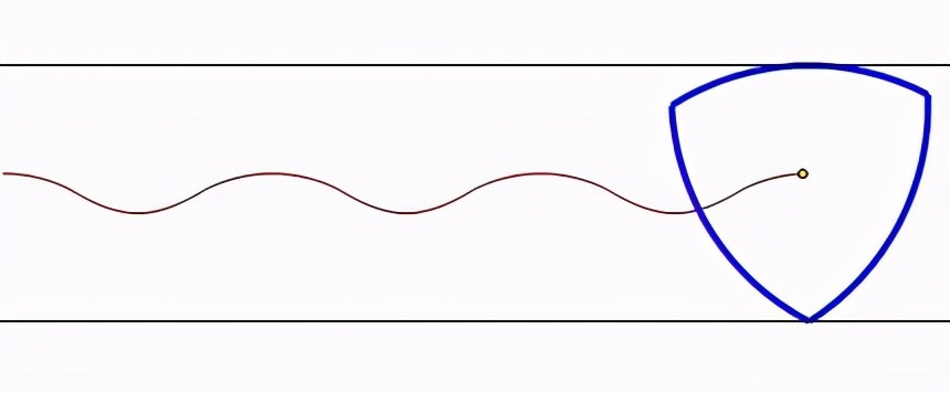 根据性质,显然“定宽曲线”也可以在一组定宽的平行线间滚动(圆也是“定宽曲线”)。