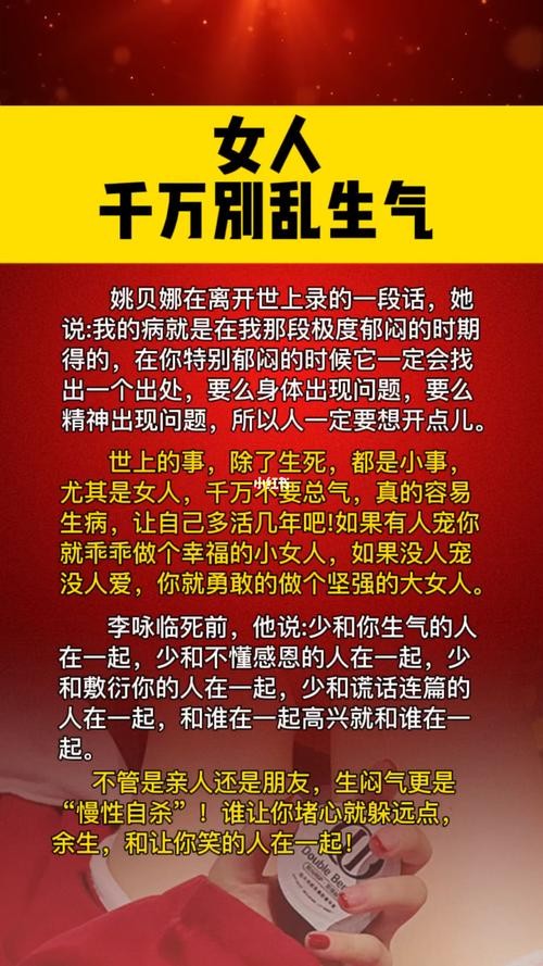 导语:生气是一种正常的情绪反应,但如果过度发泄,可能会对身心健康产生不良影响。尤其是女性,由于生理和心理的特点,生气的危害更为严重。本文将探讨女人生气的9大危害,帮助大家更好地了解和应对这一问题。