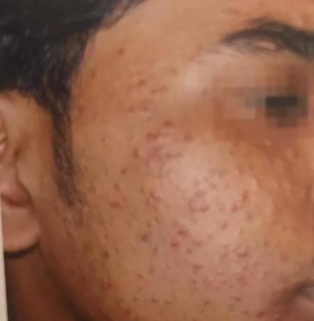 通常来讲,普通的痘痘,每一个痘痘的边界是比较清晰的,我们能够看到每一个痘痘的大概形状。而螨虫导致的痘痘往往是大片大片的红,这种情况下豆豆与豆豆之间的边界并不清晰。