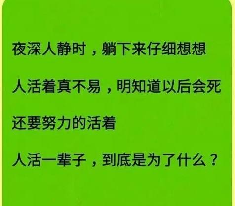 热爱祖国,热爱社会,热爱生活,热爱家庭,生儿育女,孝敬父母,循环往复,这就是人活着的理由。