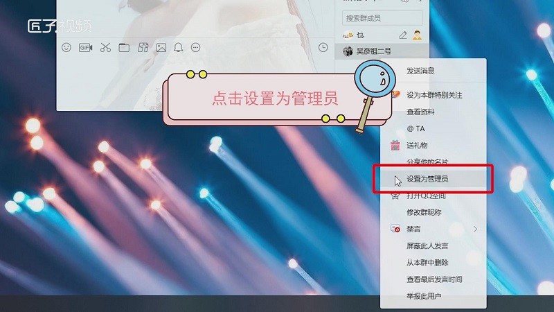 2、进入QQ群,选择一个成员,单击鼠标右键,弹出设置对话框。