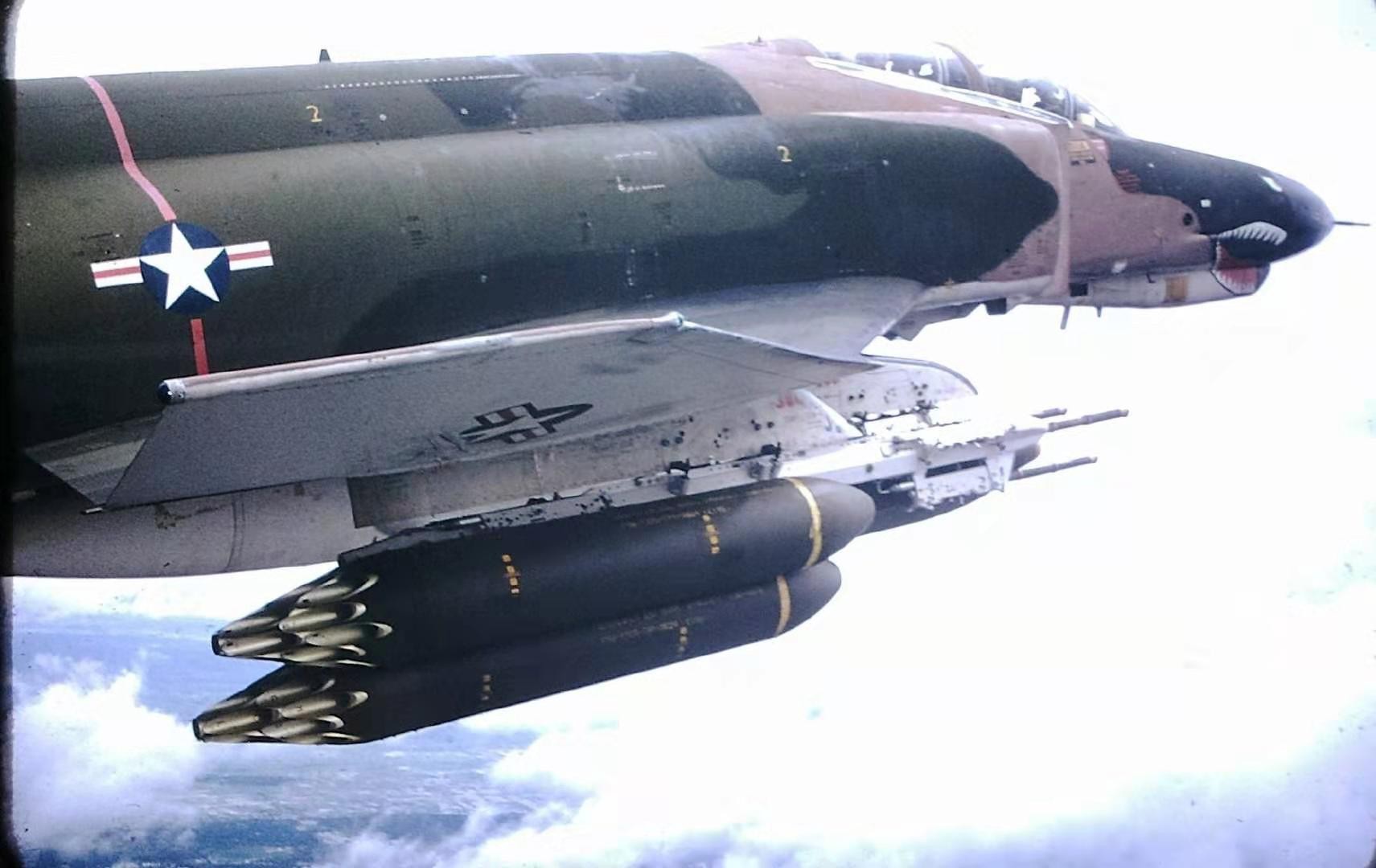 F-4战斗机投掷人员杀伤集束炸弹攻击效果