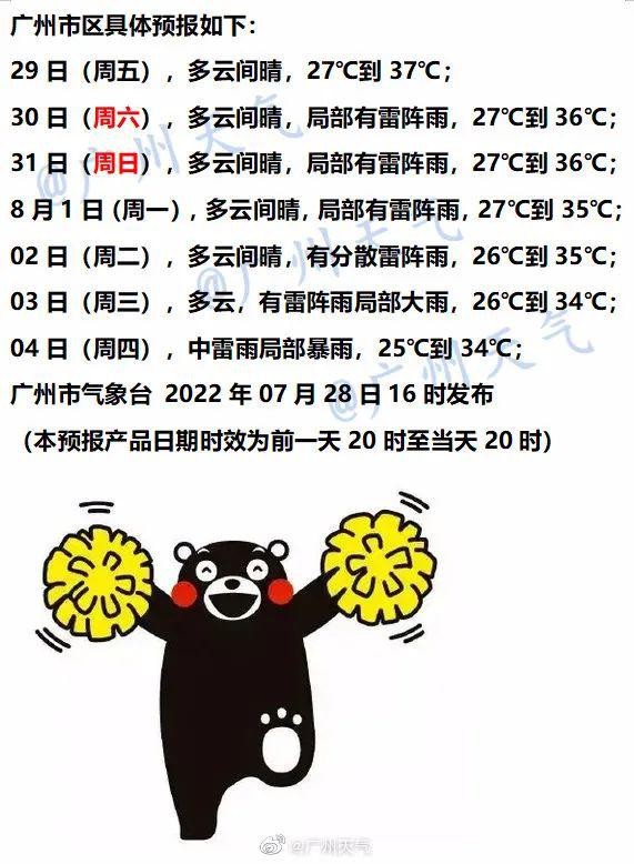 而对于广州,从7月28日开始,午后雷雨也将频繁,注意防御。