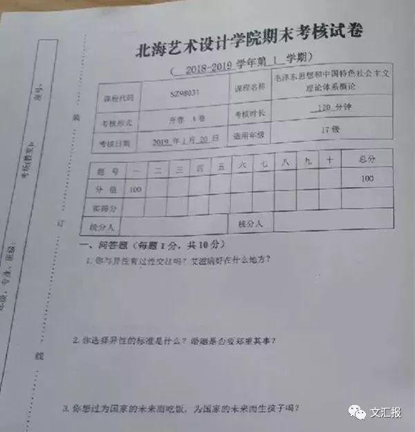 处理结果来了!教育厅公布北海艺术设计学院奇葩试题调查情况