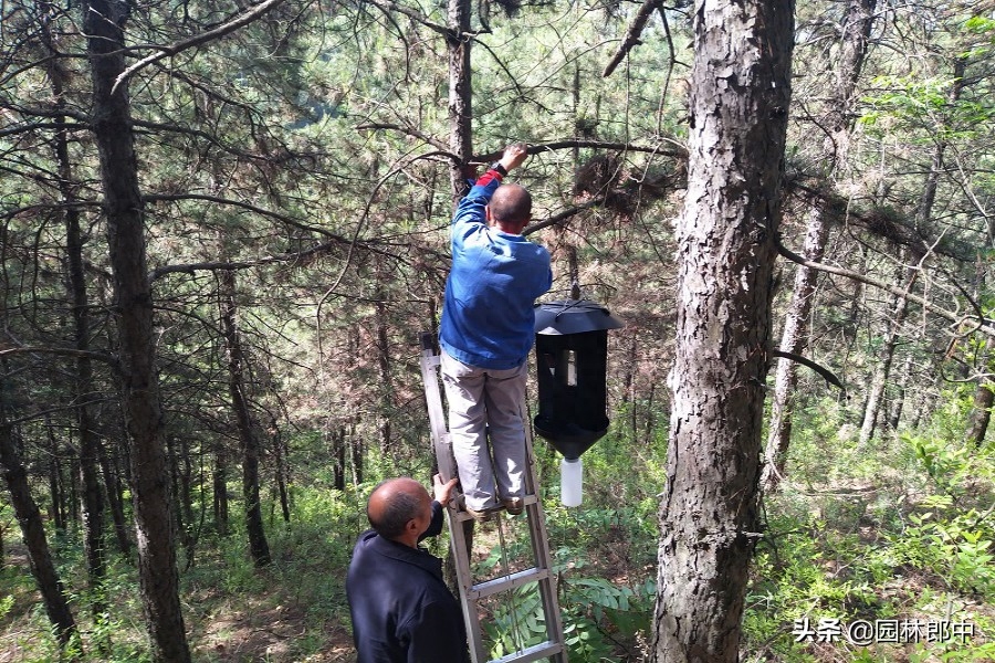 为越冬代、第一代幼虫的羽化期,根据松梢螟成虫具有趋光性的特点,晚上采用黑光灯进行诱杀;当然,也可以在傍晚选择菊酯类或者敌敌畏、辛硫磷等常规杀虫剂进行喷施。