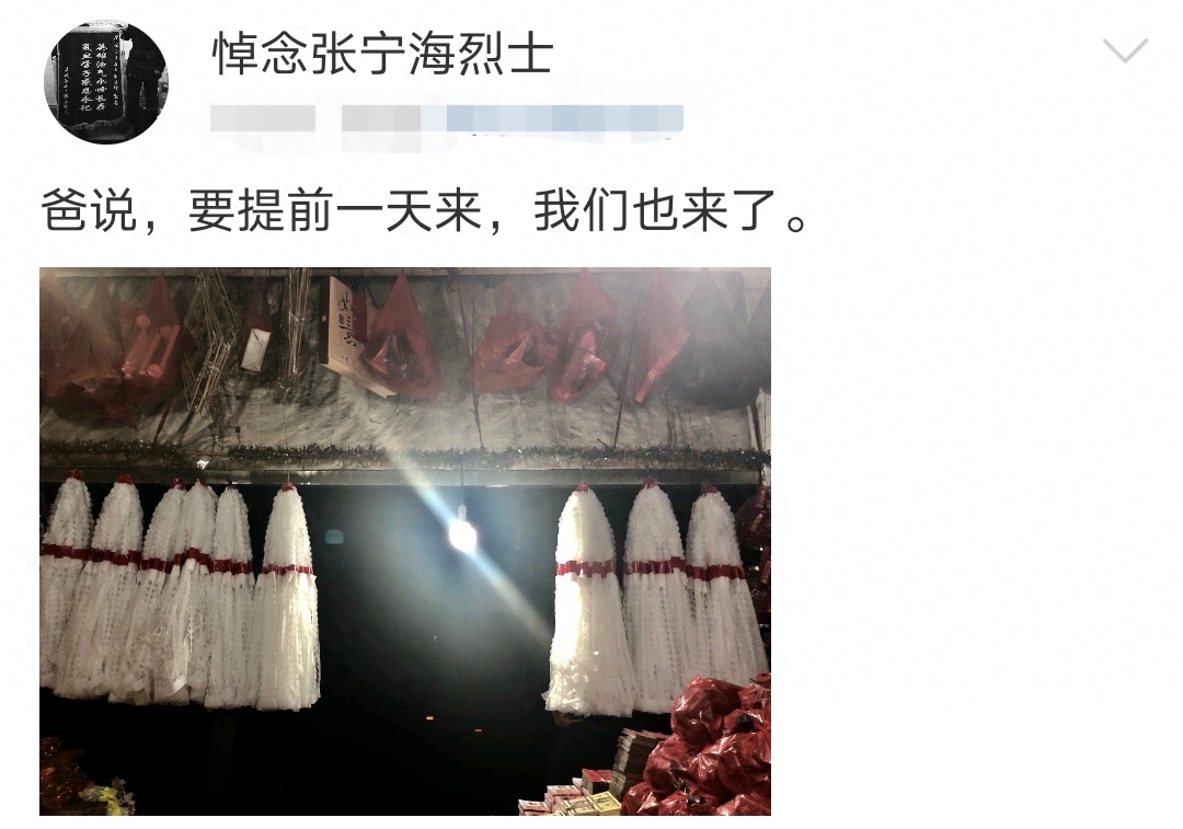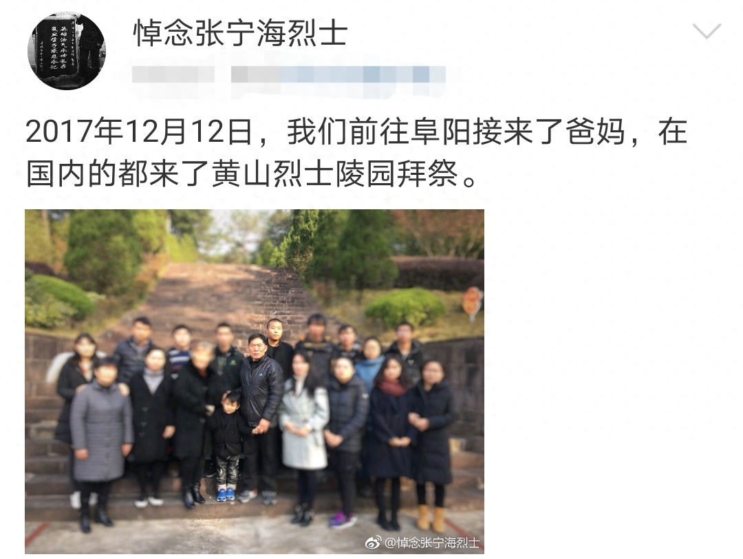 在这个微博下,他每年都会晒出自己和部分队员、还有复旦大学的老师一起去给张宁海扫墓的照片,陪着张爸张妈去给儿子扫墓的照片,在文字里,他一直称呼两位老人为爸妈,至少从形式上,他做到了视张宁海的父母为自己的父母。