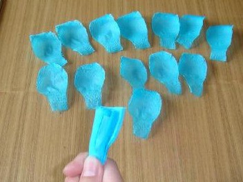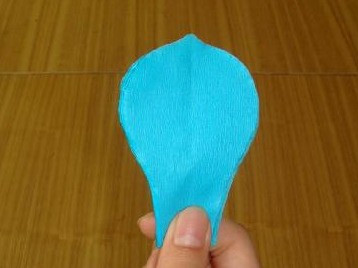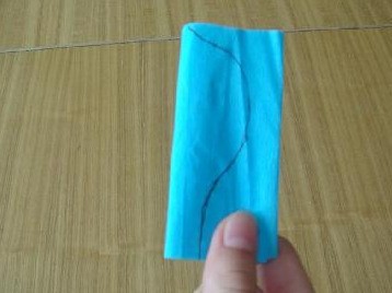 2、将剪下的皱纹纸顺着纹路对折,并画上半个花瓣,用剪刀剪下 。