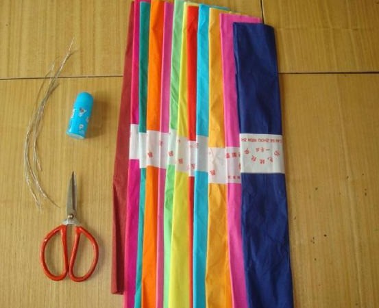 准备材料:剪刀、皱纹纸、胶棒、铁丝。