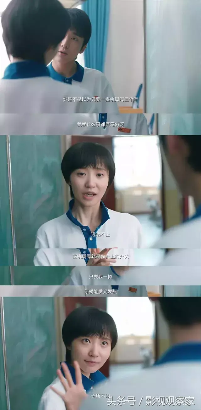 相信看到这里,所有人都会恍然大悟:当包括余周周在内的同学们都在想象自己的未来、都在往前数日子的时候,唯独米乔的日子是倒计时的。“所以她希望在她短暂的生命内把所有的她想做的事情都做完,她也会更珍惜她身边所有的一切人、事,包括每一刻时光。”