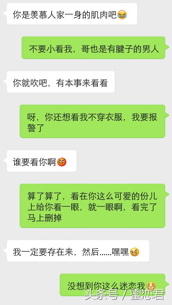 接下来女生炸毛了,别担心在暧昧情绪的作用下,哪来那么大火气,稍微安抚一下顺势再来一波挑逗。之后可以发个健身照或是明星照,搞笑图也算,以幽默的方式将话题带离,可别傻乎乎的真发个不穿衣服的照片啊!