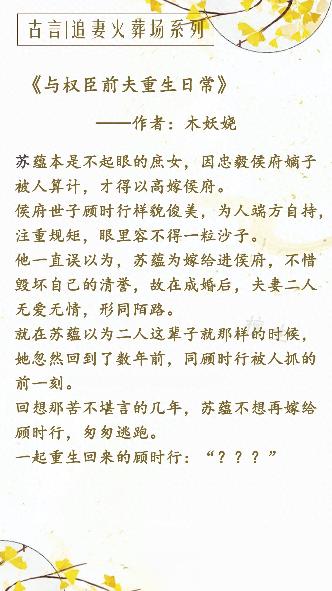 第二本:《与权臣前夫重生日常》作者:木妖娆