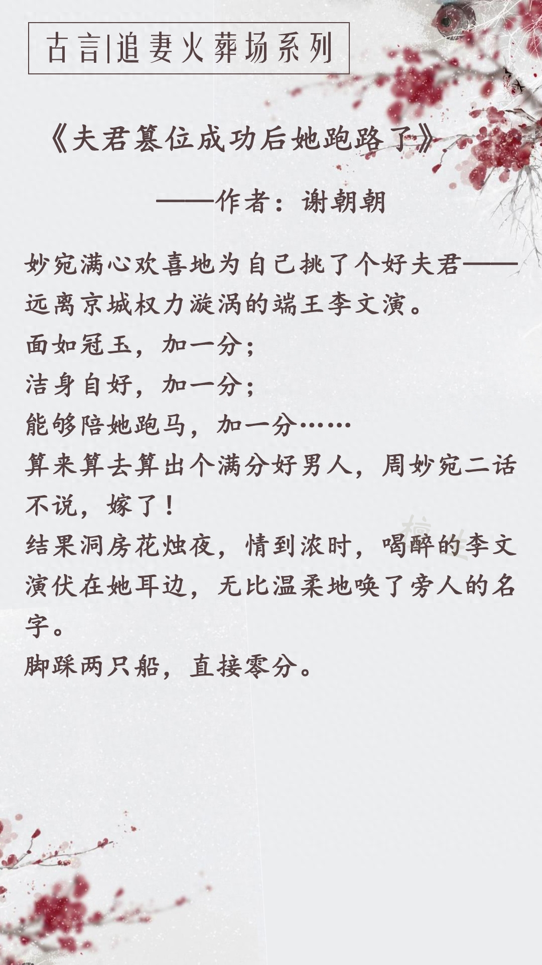 第四本:《夫君篡位成功后她跑路了》作者:谢朝朝