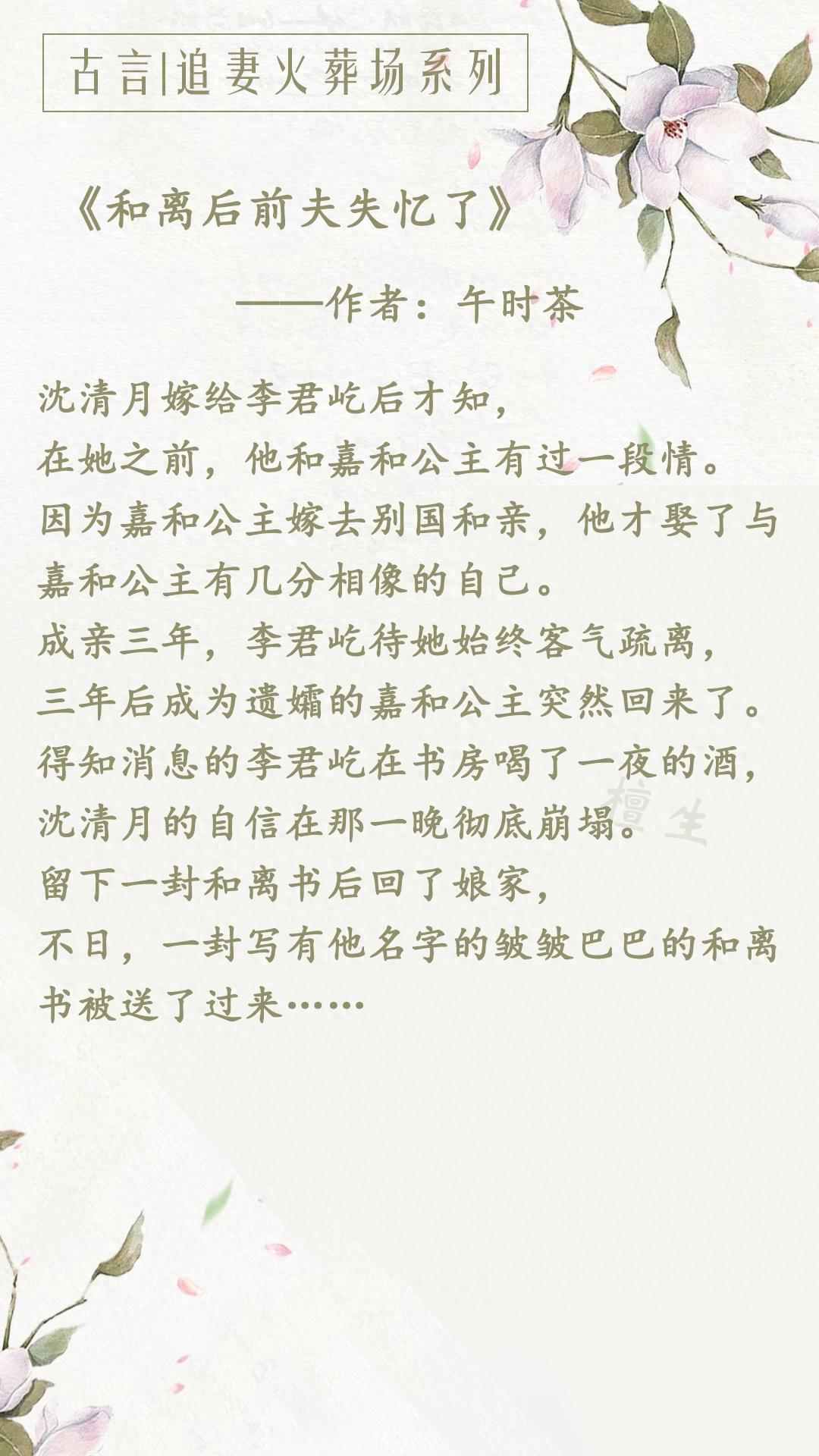 第三本:《和离后前夫失忆了》作者:午时茶