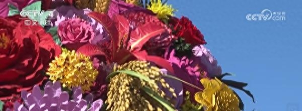 五湖四海的游客来到天安门广场拍照留念,特别是广场中央喜庆热烈的巨型花篮,更成为了最热门的留影点。2025年,广场花篮首次装入象征丰收的五谷元素,体现花团锦簇、五谷丰登,表达了全国各族人民,在同心共筑中国梦的伟大征途中开创更加美好的未来。