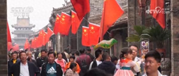 在山西平遥、广西阳朔、江苏泰州等地,一面面国旗热烈醒目、一条条街道花团锦簇。