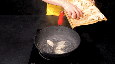 将包好的饺子放入沸水中,肉饺子煮约4分20秒捞出即可出锅。