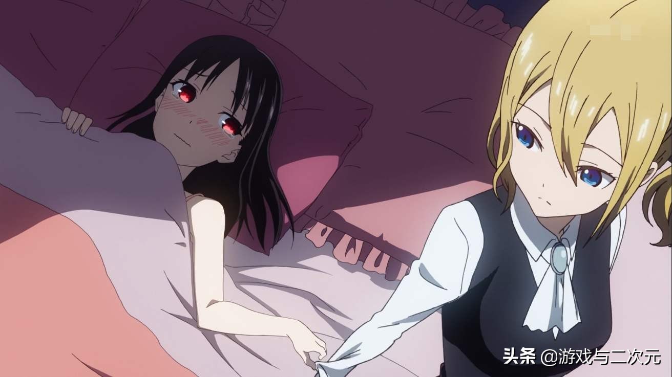 有这种变化首先要归功于藤原书记。在辉夜还是冰冷大小姐的时期,藤原书记是辉夜除了近侍早坂爱以外唯一的朋友。在动漫里常有一句话“天然克傲娇”,本身傲娇的辉夜苦心安排的计划总会被书记稀里糊涂地搅合掉。同时辉夜的家庭情况导致其对男女之间的知识认知还在“亲吻”上,而藤原书记每次都能秒懂,并且顺便的给辉夜普及知识,导致大小姐奇怪的知识越来越多。