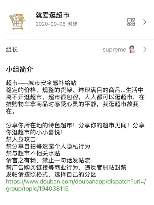 豆瓣上有个小组叫“就爱逛超市”,小组简介里说,超市是城市安全感的补给站。