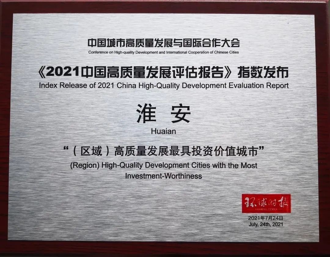 正是基于淮安事事为企业着想的服务理念,7月24日,在中国城市高质量发展与国际合作大会上,淮安市一举摘得