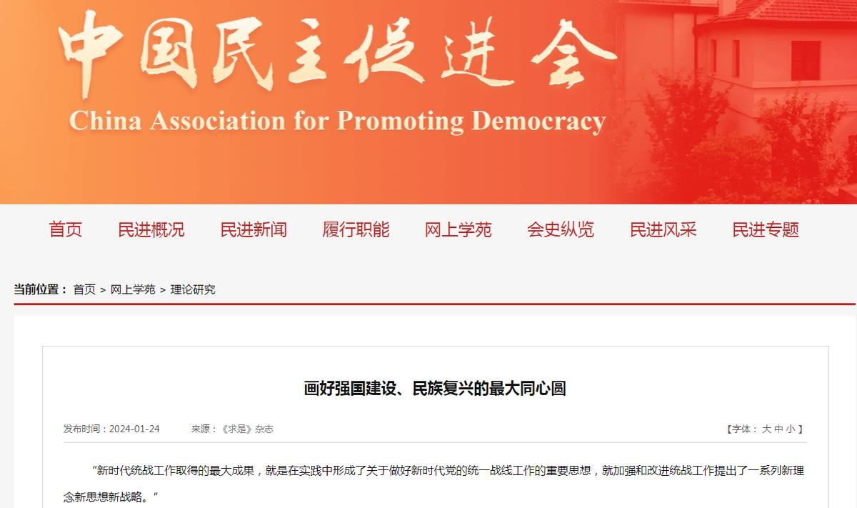 中国民主促进会,画好强国建设、民族复兴的最大同心圆