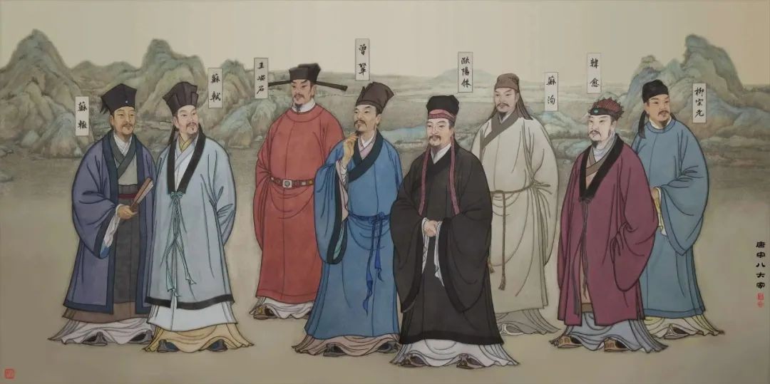 唐宋八大家:唐代柳宗元、韩愈和宋代欧阳修、苏洵、苏轼、苏辙、王安石、曾巩。