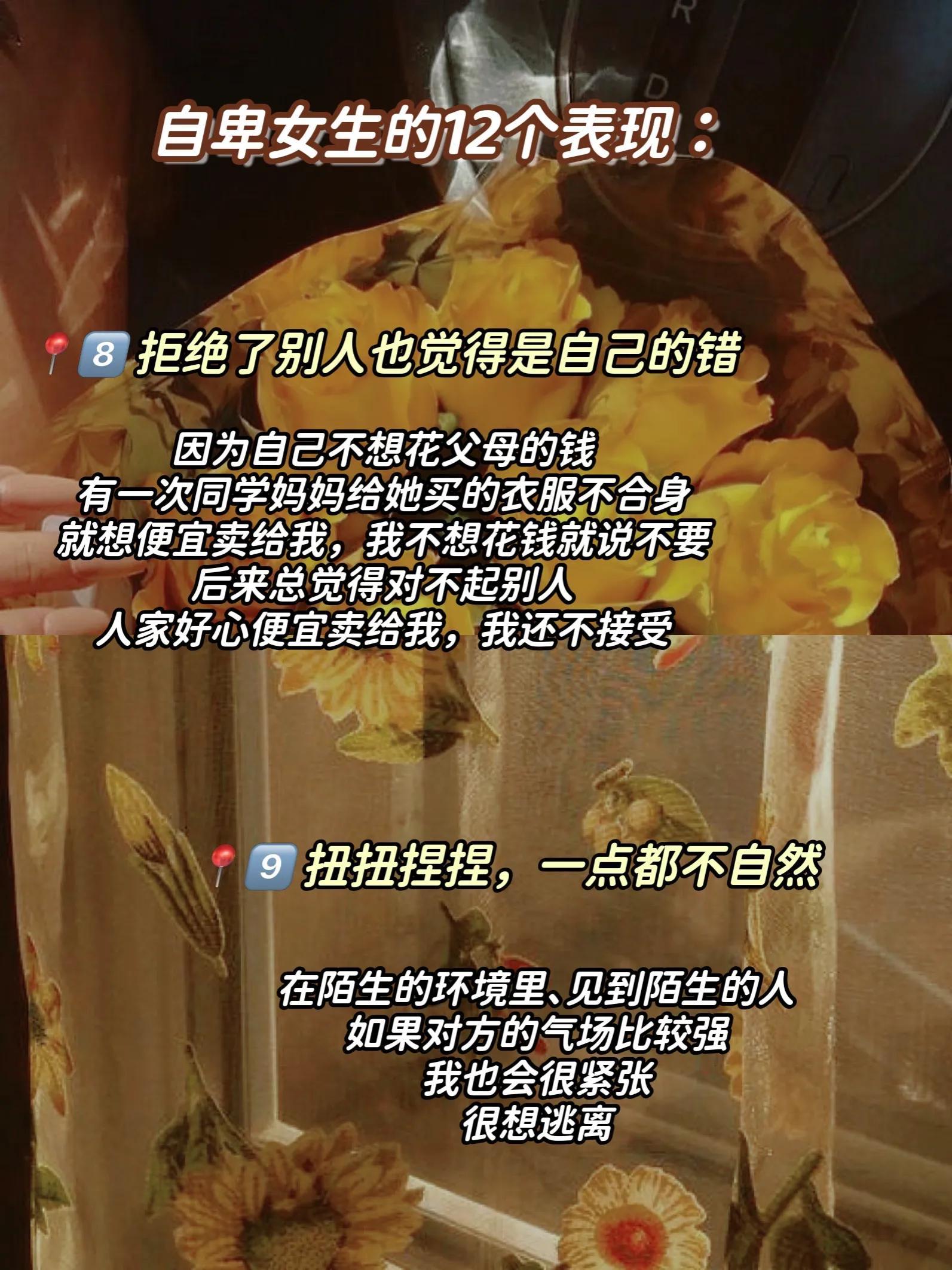 以上就是我根据曾经自卑的经验总结的12个自卑女生的表现和特点