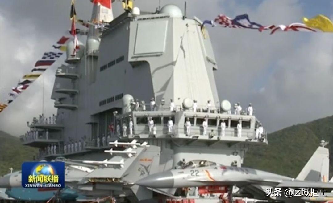 山东号航母的服役仪式,可见舰载机已经着舰