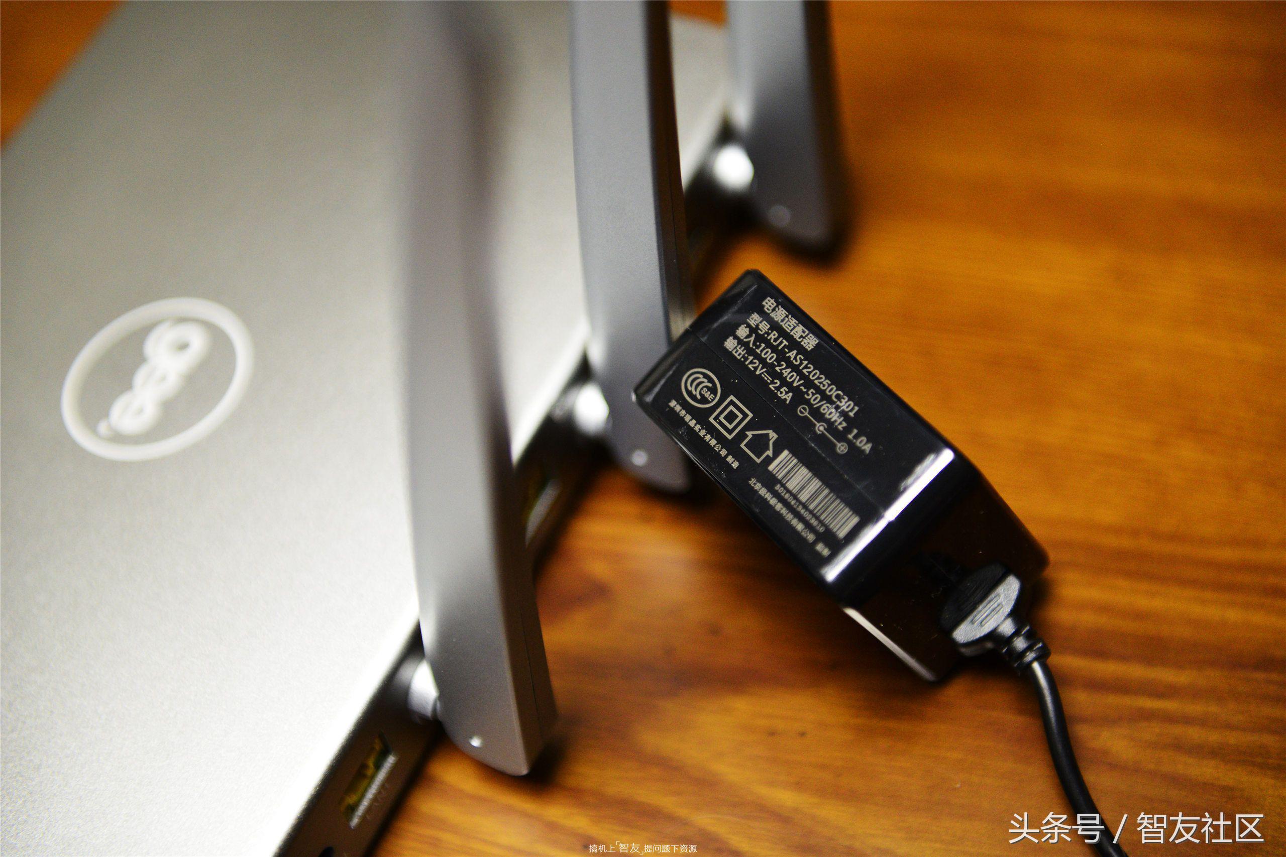 12V 2.5A的电源适配器分量很足,虽不能简单以重量判断电源适配器的转换效率,不过旗舰产品的细节处处讲究,极路由深谙此点。