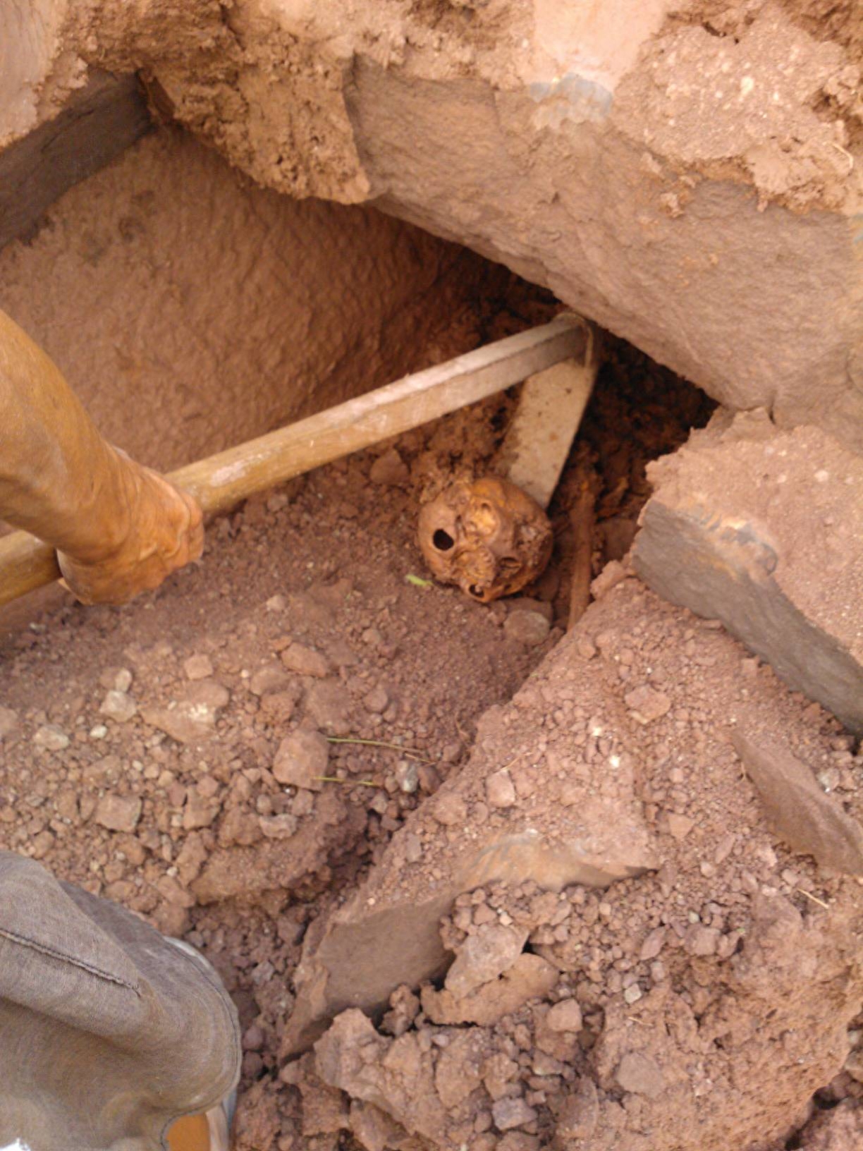 张英杰清开了浮土,他惊讶地发现,地上出现了一块块的青砖。这些青砖经白灰抹缝,最后拼合再一起,呈现土馒头的形状,很显然,这是一座无名的古墓。